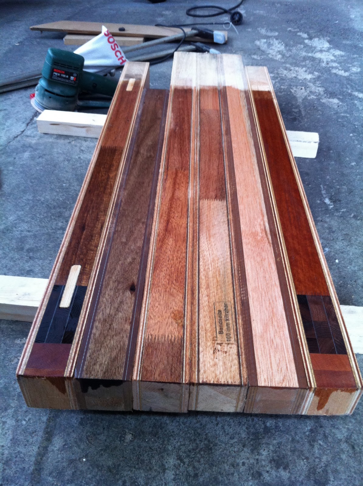 This is a work in progress. i found the wood behind a factory. i really like how there are all kinds of massive wood and even aluminum pressed together. i don´t know what they are originally used for but i have to find out to gather more of them! i still need to cut them to the right size and find some material for the legs...i´ll let you know once i figured it out.